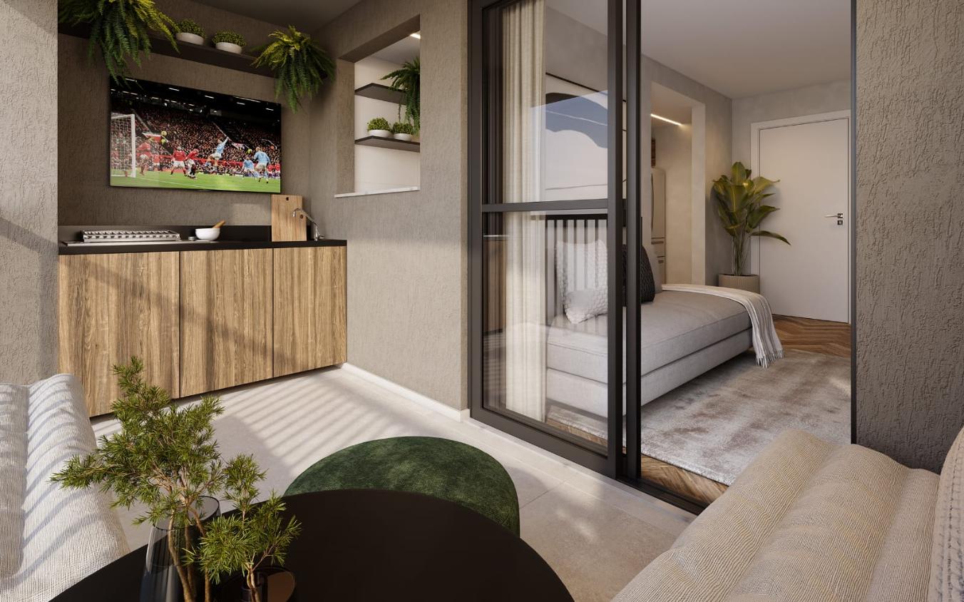 Mais de 20 diferenciais de lazer e bem-estar: piscina de 50m com spa e acquaspray kids, rooftop panorâmico, coworking, academia com crossfit, espaço gourmet, minimarket inteligente e até recarga para veículos elétricos.