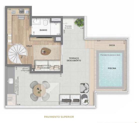 Unidades modernas com Coberturas opções de 2 a 3 quartos, varanda e vaga.